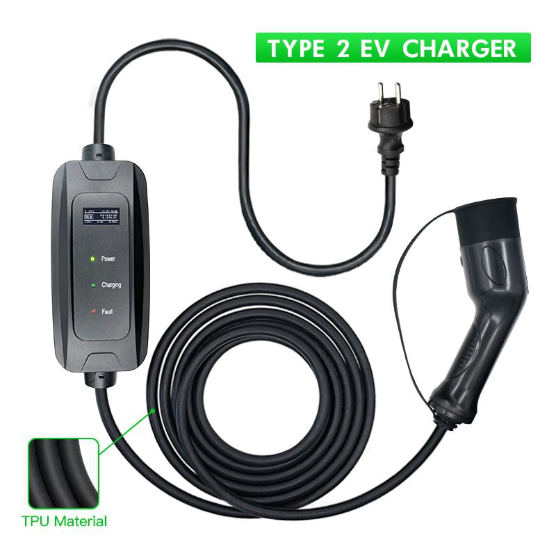 Electric Vehicle Charging Station Evse Type 2 Car Charger For Leaf Tesla Ev Charger Eu Schuko Plug 32a Adjustable Iec 62196 2 Battery Cables Connectors Aliexpress